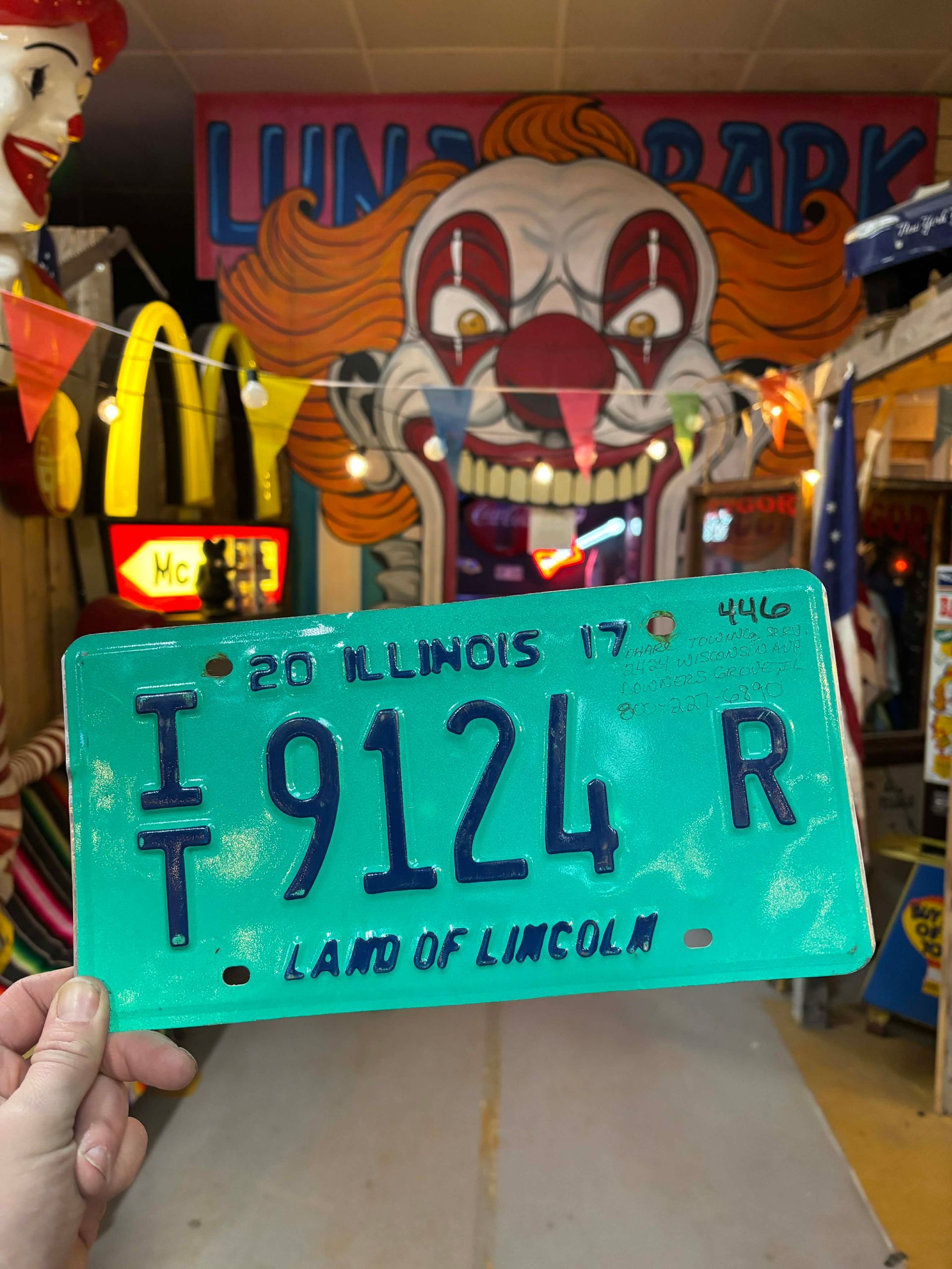 Ajoutez une véritable pièce vintage américaine à votre décoration avec cette authentique plaque d’immatriculation de l’État de l’Illinois, importée directement des États-Unis.